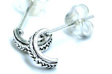 シルバーの艶やかな輝きとセンター部分の燻し銀加工された裂け目のデザインコントラストがピアス自体に立体感を演出!シンプルで綺麗なハーフピアスは男女を問わず装着できるユニセックスなシルバーピアスです。